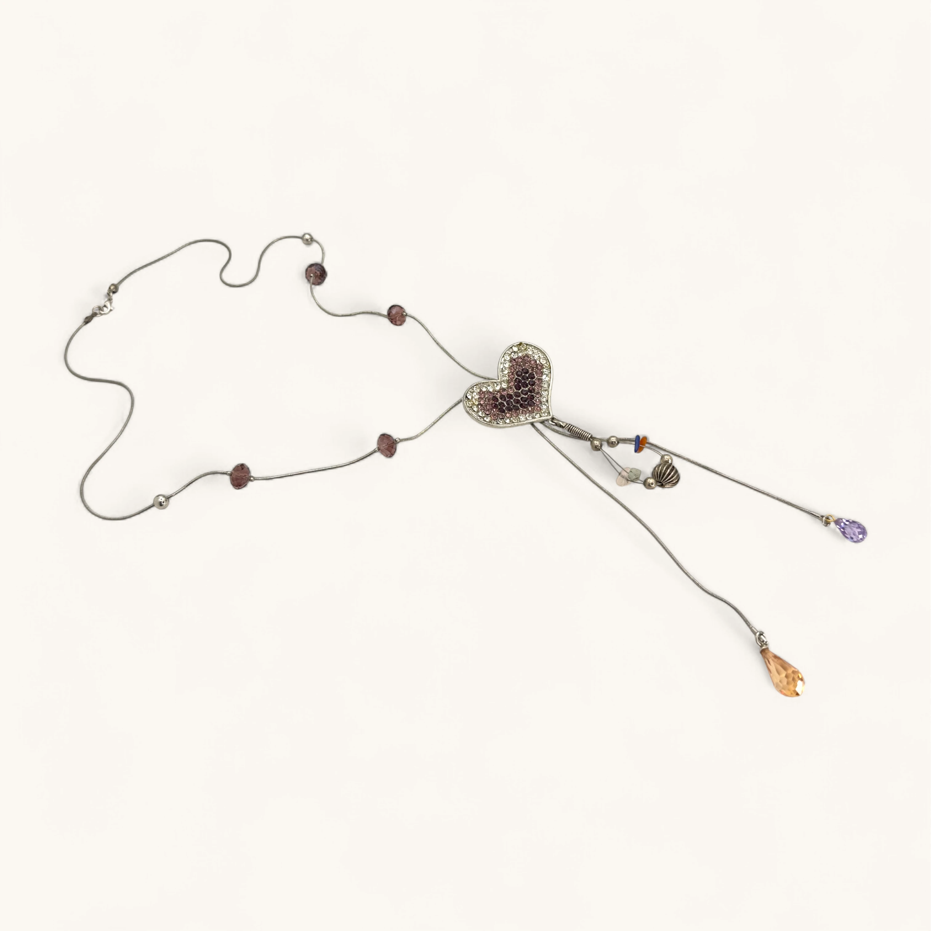 Whimsical centerpiece shaped like a heart mosaic with bead clusters and two crystal teardrop tassels. A romantic statement piece.